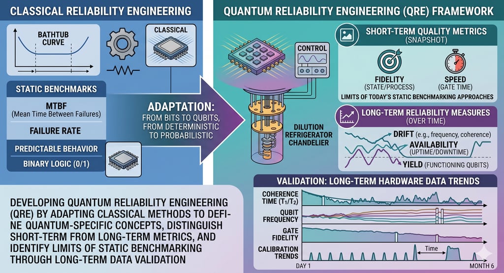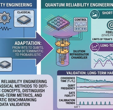 At QMAPS Lab, we are developing a Quantum Reliability Engineering (QRE) framework for quantum hardware by adapting established classical reliability methods to the quantum domain. The work focuses on defining quantum-specific reliability concepts, distinguishing short-term quality metrics such as fidelity and speed from longer-term reliability measures such as drift, availability, and yield, identifying the limits of today’s static benchmarking approaches, and validating the framework using longer-term hardware data such as coherence, frequency, fidelity, and calibration trends collected over time.